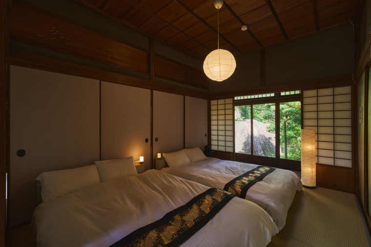 畳の香り漂う和室は、心を落ち着かせる静かな空間。最大12名までご宿泊可能な広さで、ご家族やご友人との特別な時間を演出します。窓の外に広がる庭の景色が、季節ごとに異なる表情を見せてくれます。